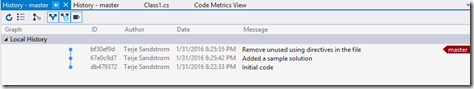 To see this in action, do a change in a solution and commit that, but don’t push it up. IN the example below the last change is just an added .gitignore file.