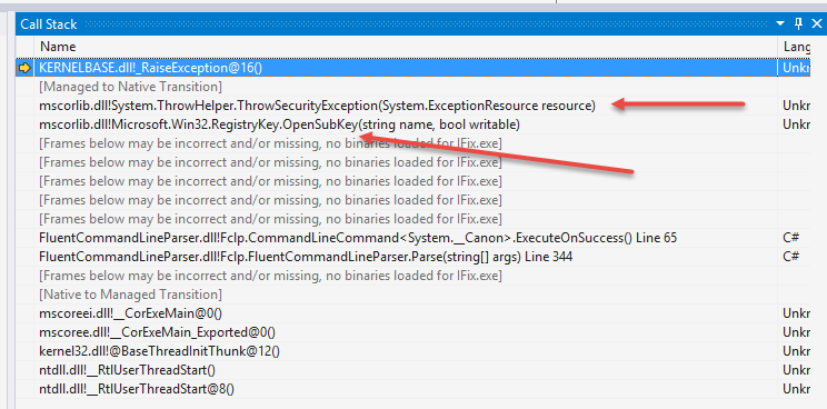 Ahh, I have been trying to access the registry, but without the right access rights!! That makes sense. To read the registry I need to run from an elevated admin prompt, which I obviously didn’t do, but the code should not crash on me – this should be fixed.