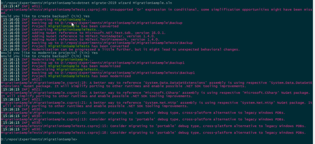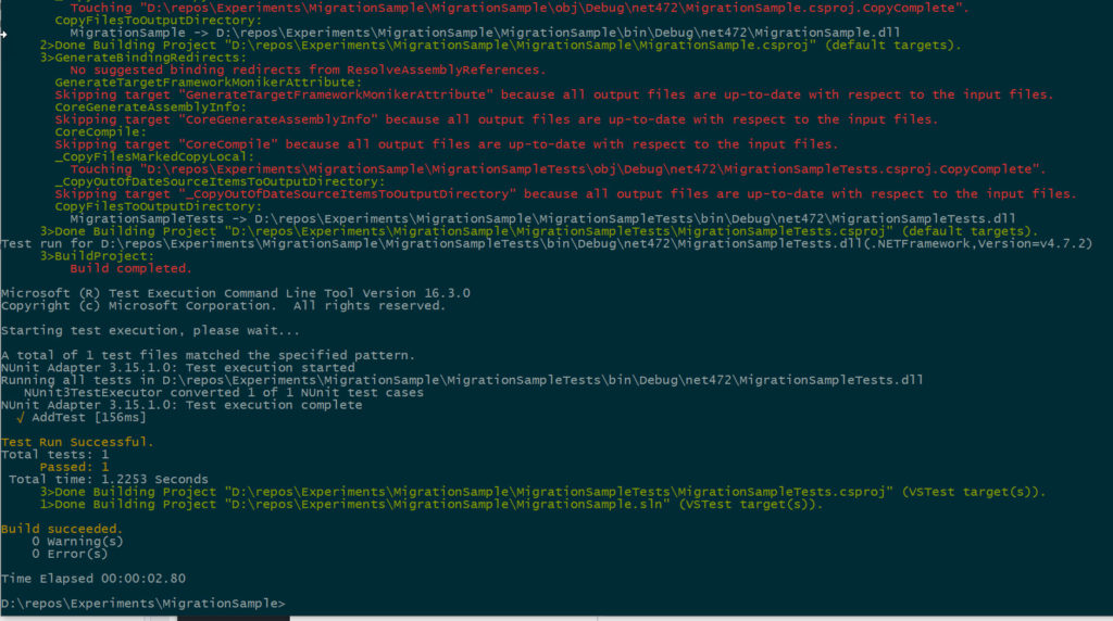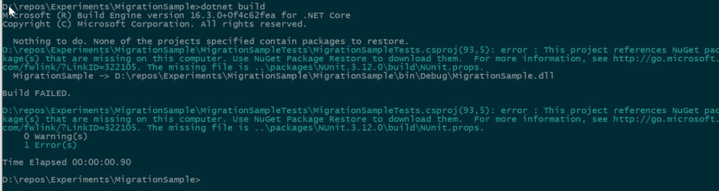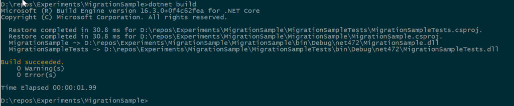 If we now do a ‘dotnet build’, we see it builds just fine. This is a good indication that the conversion was successful. You will not always be that lucky!