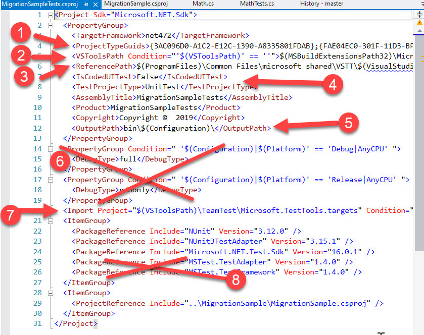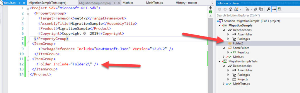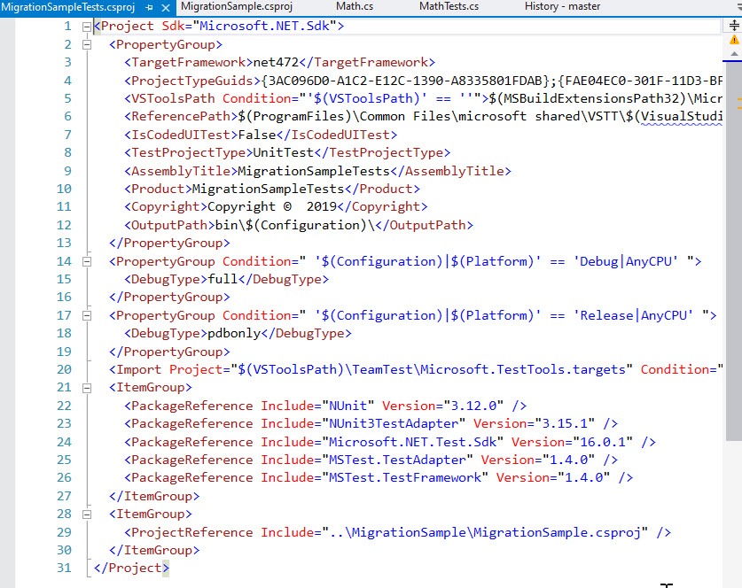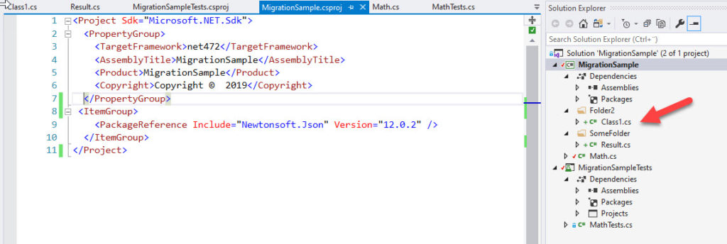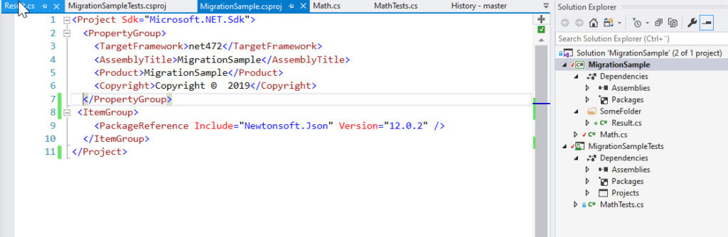 Below is a sample project containing a small Math class library, and a unit test project for the same. Both projects run using .net framework 4.7.2, and we want to keep it as a 4.7.2 project, even after conversion to the SDK style.