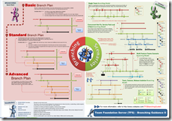 One of my favorites is the diagram poster shown below which I’ve used to explain the different branching strategies, and I find this very useful and easy to explain. You’ll find it in one of the tabs of the Visio file included in the download package.
